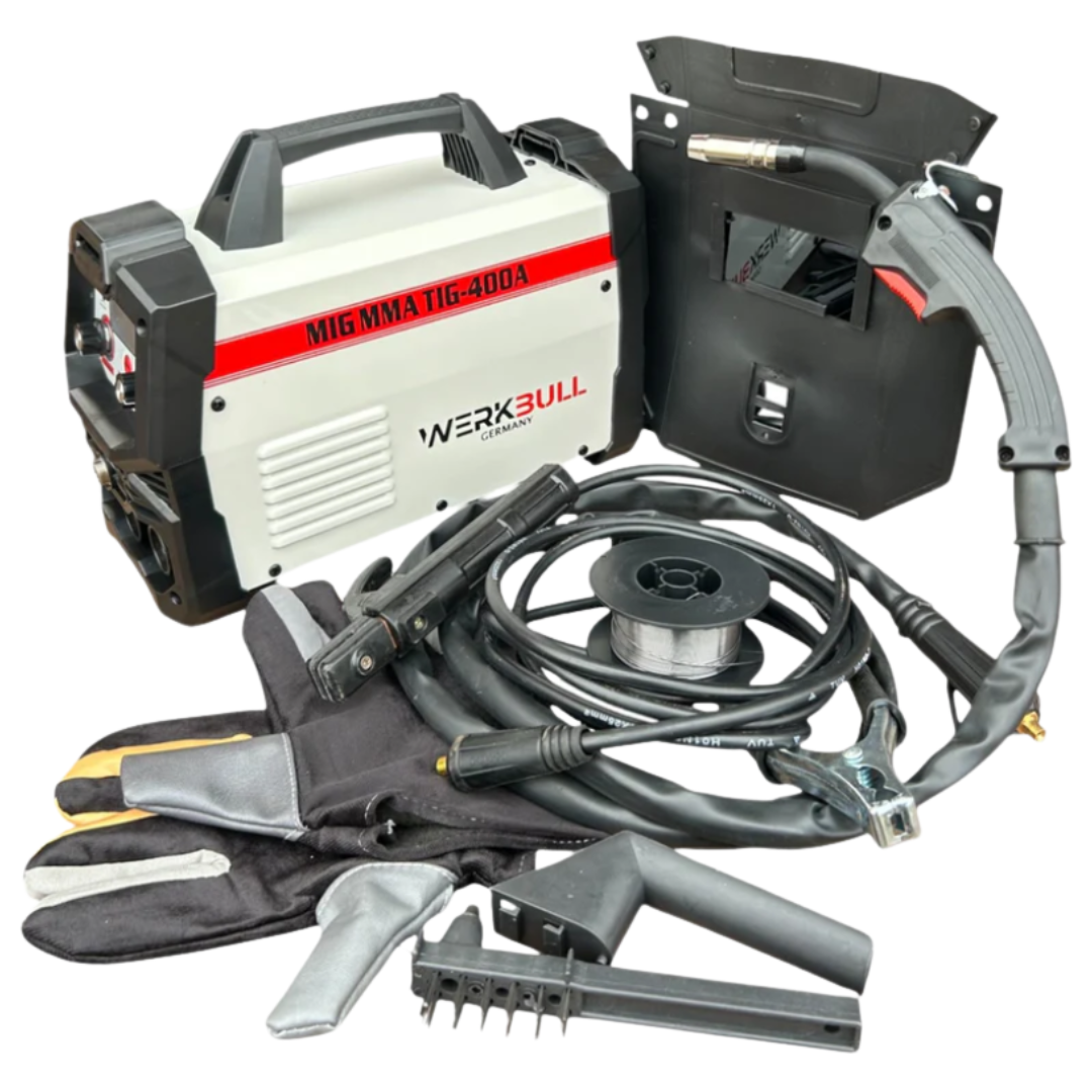 2в1 Телоподаващ Инверторен Електрожен 400А WERKBULL + Фотосоларен заваръчен шлем