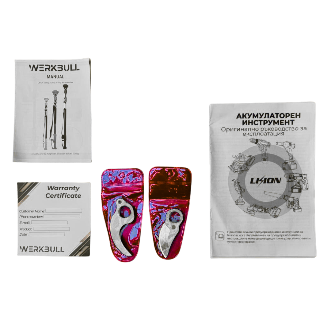 Немската Лозарска Ножица WerkBull на батерии е изключително важна придобивка във всеки двор, особено през есенните месеци от годината. Тествана от професионалисти, ножицата реже до 12 000 клончета безпроблемно.