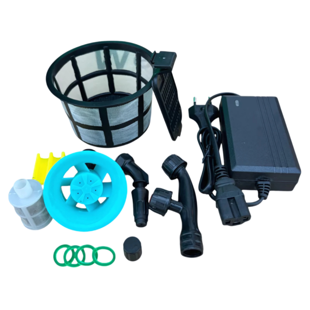 Пръскачката използва необслужваем оловен акумулатор с гел и миниатюрен електродвигател, задвижващ помпата, която създава налягането, както и индикация за моментен заряд.