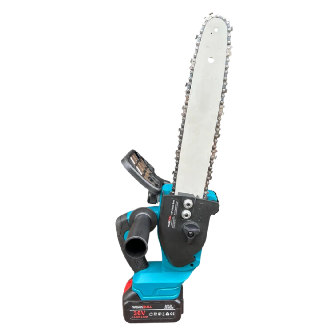 Новият немски акумулаторен верижен трион e захранван с мощна батерия от 36v, която издържа до 320 рязания преди да се зареди отново. Веригата и дългата шина позволяват рязането на дърво с диаметър 20см с лекота. Той е високоефективен и с ниско ниво на шум при работа. Меката ръкохватка предпазва от приплъзване. Има регулируемо автоматично смазване на веригата. Индикатор показва нивото на заряд в батериите. Веригата се настройва и опъва безпроблемно и не е необходимо да разполагате с инструмент. Спирачката се активира с помощта на предния предпазител за ръката. Ниското ниво на шум прави инструмента подходящ за използване на обществени места или в жилищни комплекси. Удобната предна ръкохватка и ергономичният корпус идеално пасват на ръцете на потребителя и са удобно за работа с една ръка. Осигуряват по-голям комфорт и ефективност по време на работа с инструмента. Трионът пристига в комплект с два броя вериги и батерии. Подходяща е както за любители, така и за професионалисти!