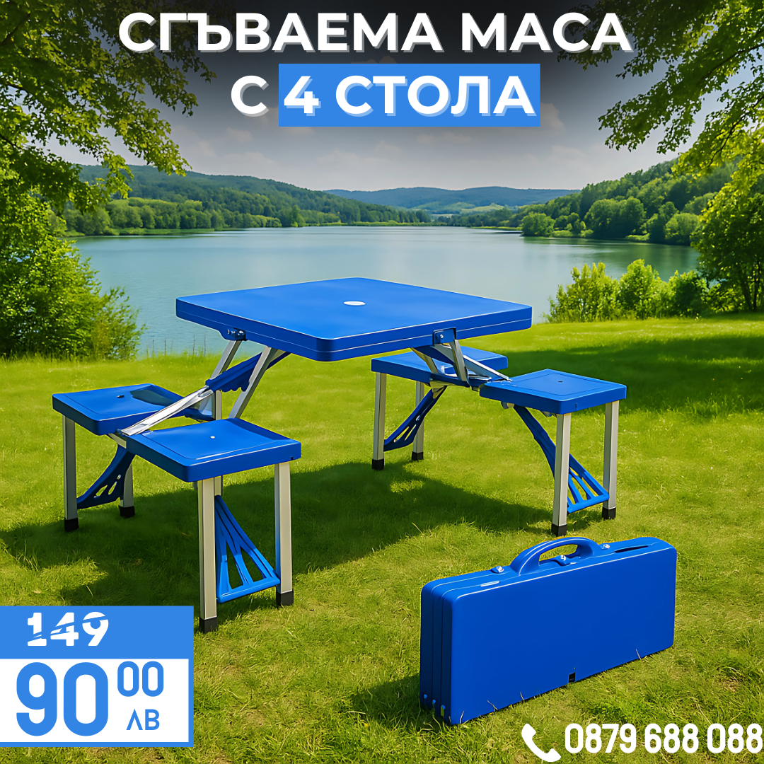 🧺 Превърнете всеки излет в стилно и удобно преживяване с нашата сгъваема маса за пикник! 🧺 Споделете радостта от храненето на открито и създайте незабравими спомени със своите близки.