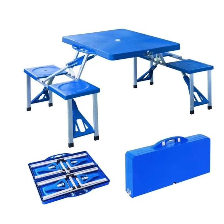 Насладете се на удобство и стил с нашата атрактивна сгъваема маса за пикник с 4 вградени стола!