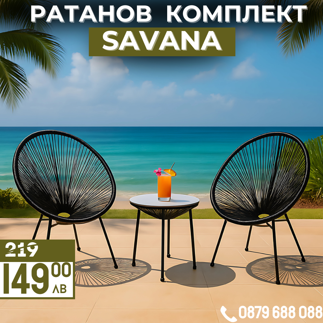 Със "Савана" ще внесете стил, комфорт и спокойствие във всеки външен кът. Подходящ както за релакс, така и за споделени моменти с близки и приятели. Максимална товаримост на столчетата - 200кг
