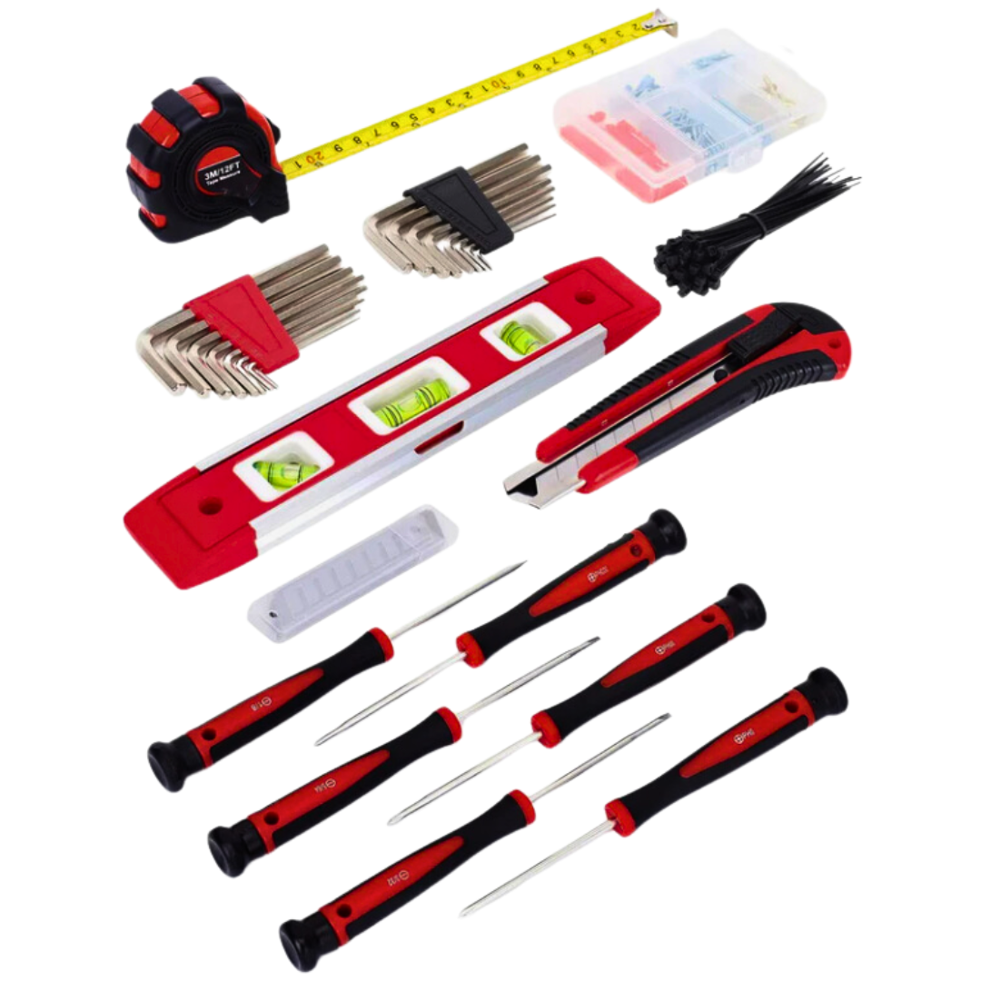 Чук с дръжка от фибростъкло от 8 унции, 9 инча, нивелир, 3M/10FT рулетка, 18 mm ,макетен нож, остриета на ножове, хардуерен комплект, кабелни връзки,