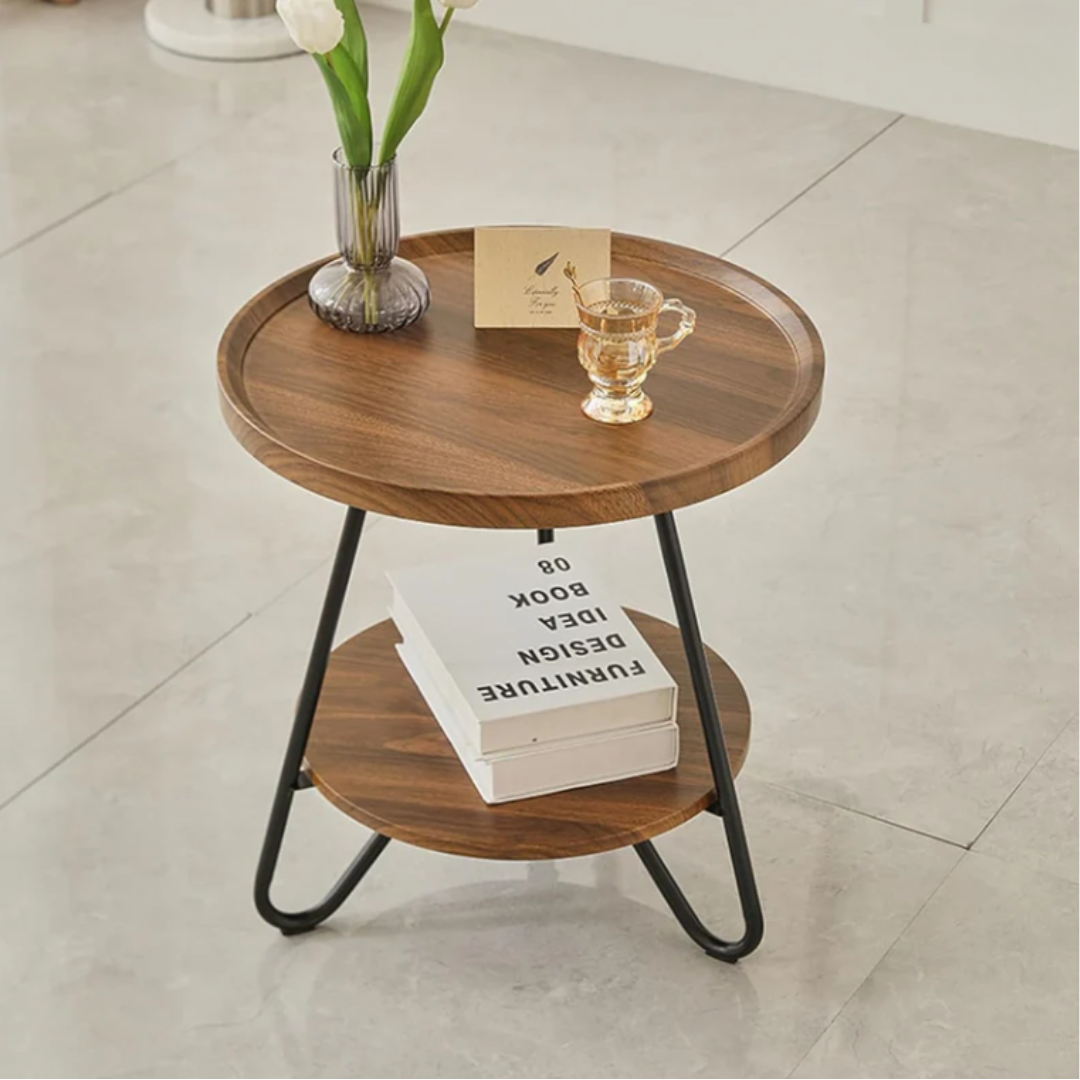 Добавете стил и практичност към всяко помещение с тази елегантна кръгла маса с два плота. Идеална за всекидневна, спалня, офис или балкон, тя комбинира модерен индустриален дизайн с топлия вид на дърво и устойчивостта на метал.