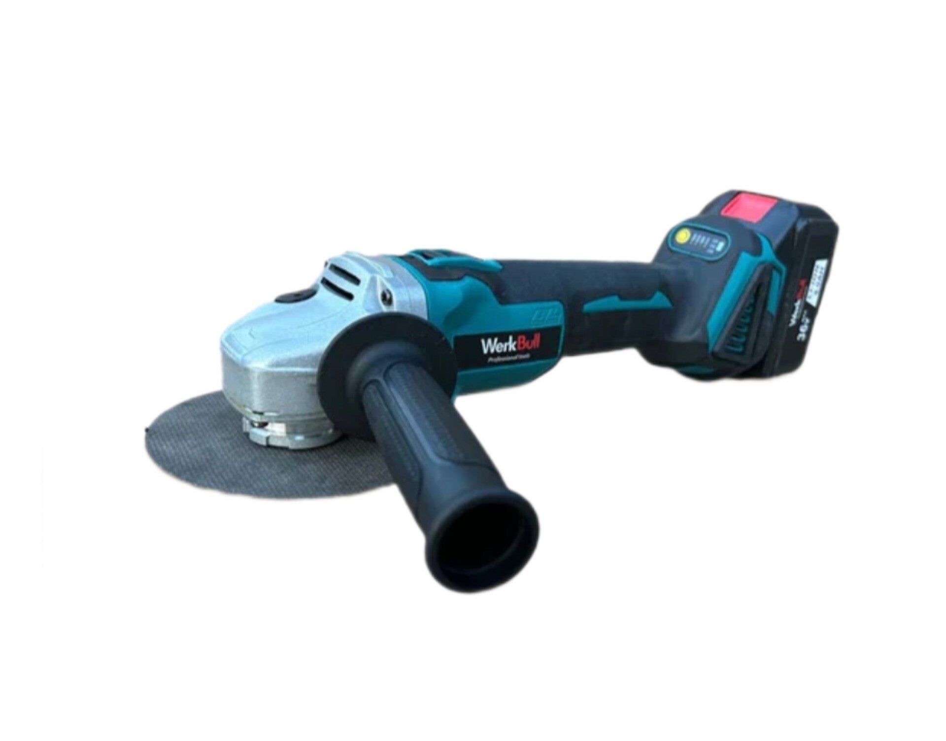 Безчетковият акумулаторен ъглошлайф се захранва с 36 V батерия, работи с дискове с диаметър 125 мм и скорост 9000 об./мин. Оборудван е със защита от претоварване, константна електроника, защита срещу повторно включване при неочаквано прекъсване на електрическото захранване и плавен старт.