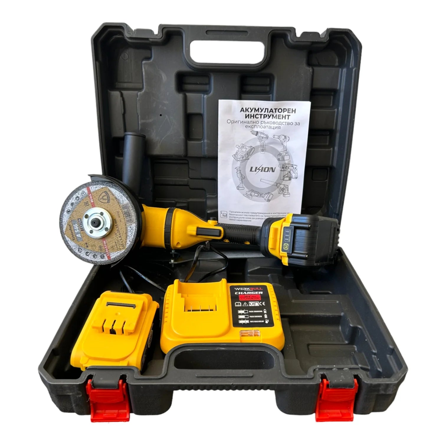 Немски Акумулаторен Безчетков Ъглошлайф WerkBull 36V + 2 Батерии и Зарядно с Куфар