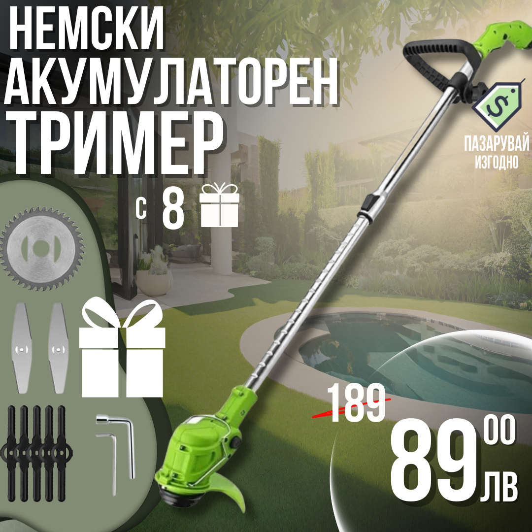 Немски Акумулаторен Тример WerkBull с 2 батерии + 8 подаръка