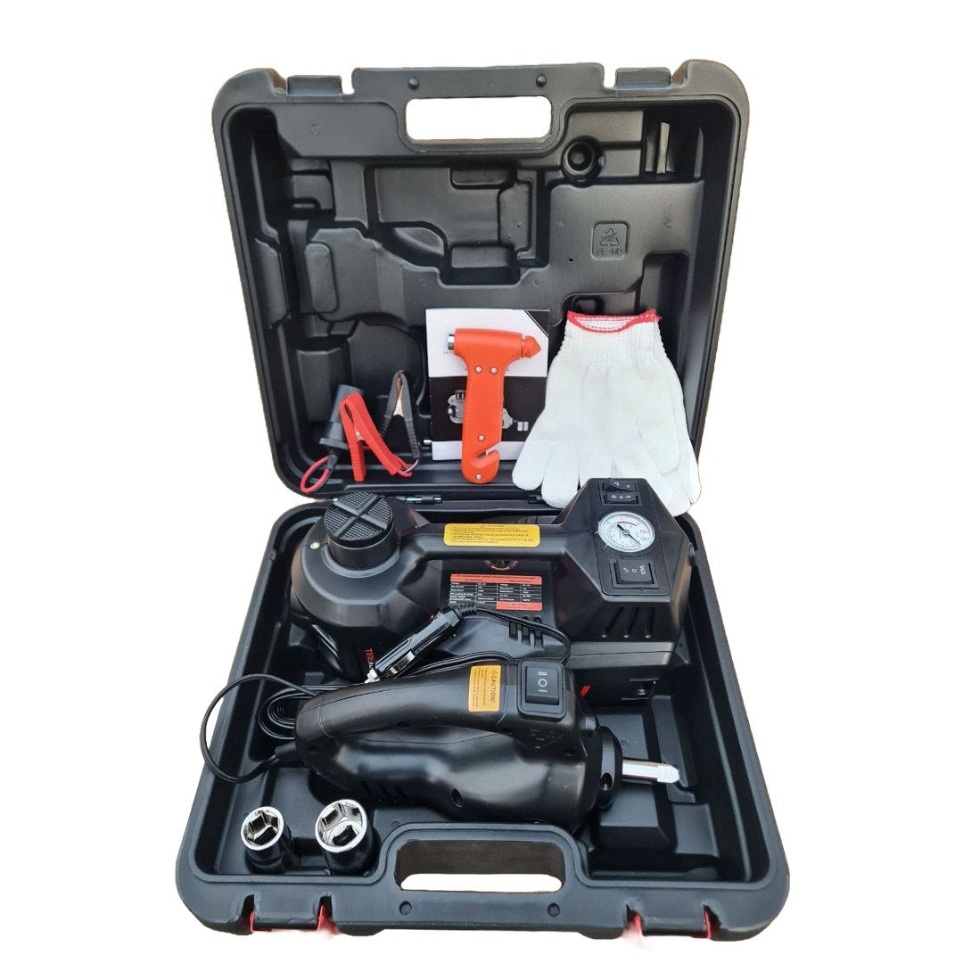 Немски Авариен Комплект 3в1 – Компресор, Ударен Гайковерт, Хидравличен Крик 5Т