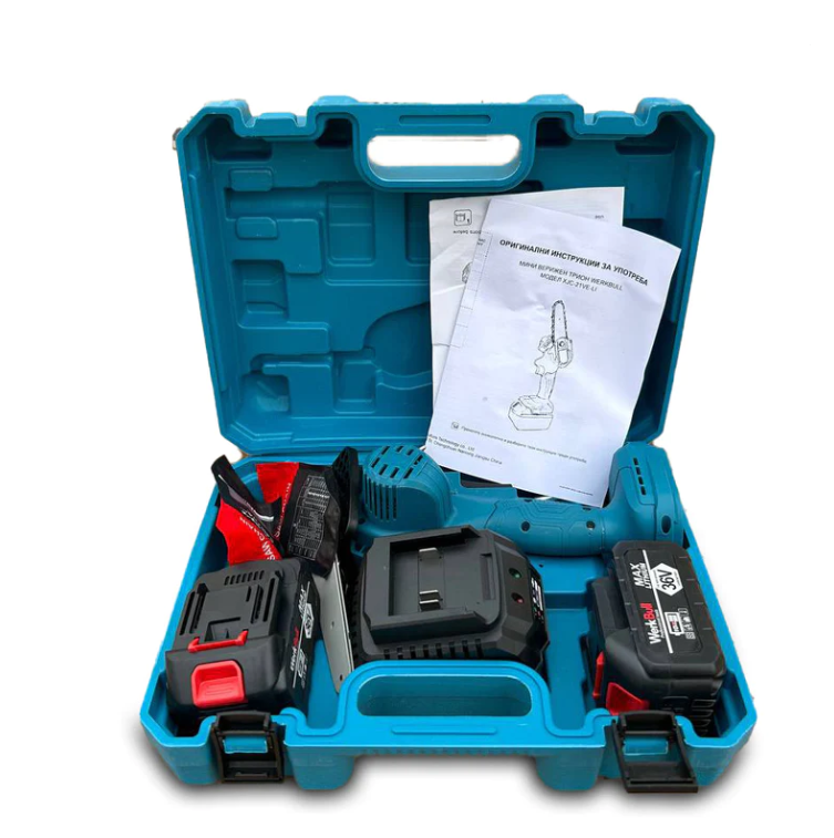 Немски Комплект Акумулаторен Тример WerkBull и Мини Резачка + четири батерии 36V/ 8Ah и две зарядни + 12 подаръка