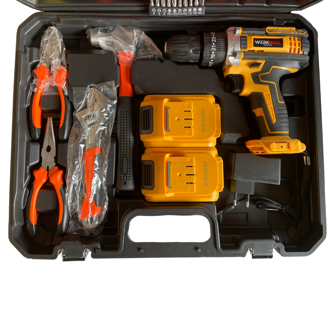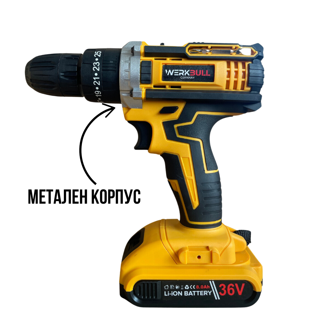 Акумулаторен Ударен Винтоверт с Метален Корпус и 111 Части в Комплект – WerkBull