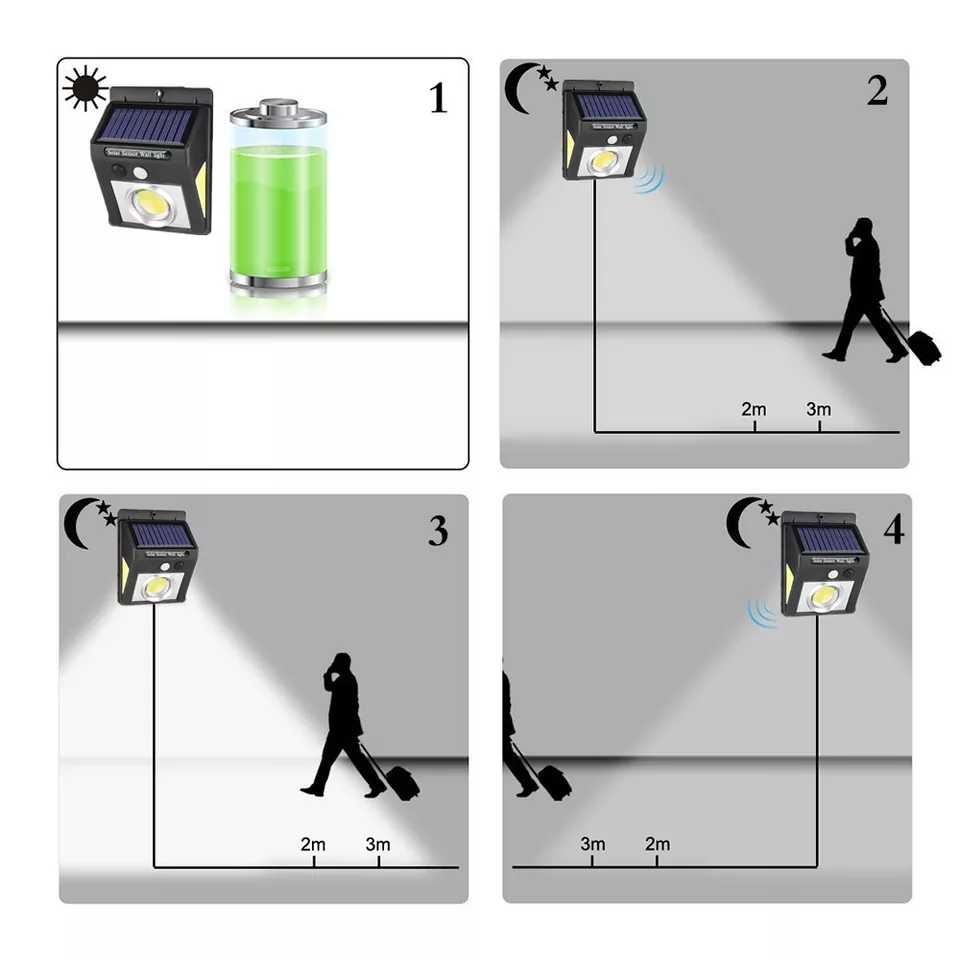 Време за осветяване след задействане на сензора за движение: 25 секунди. След поемане на светлина през соларния панел в продължение на 8 часа, лампата е готова да Ви предостави до 12 часа време за работа.